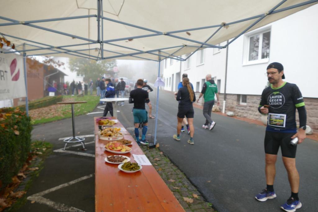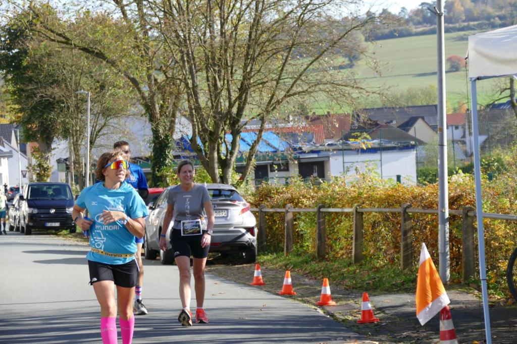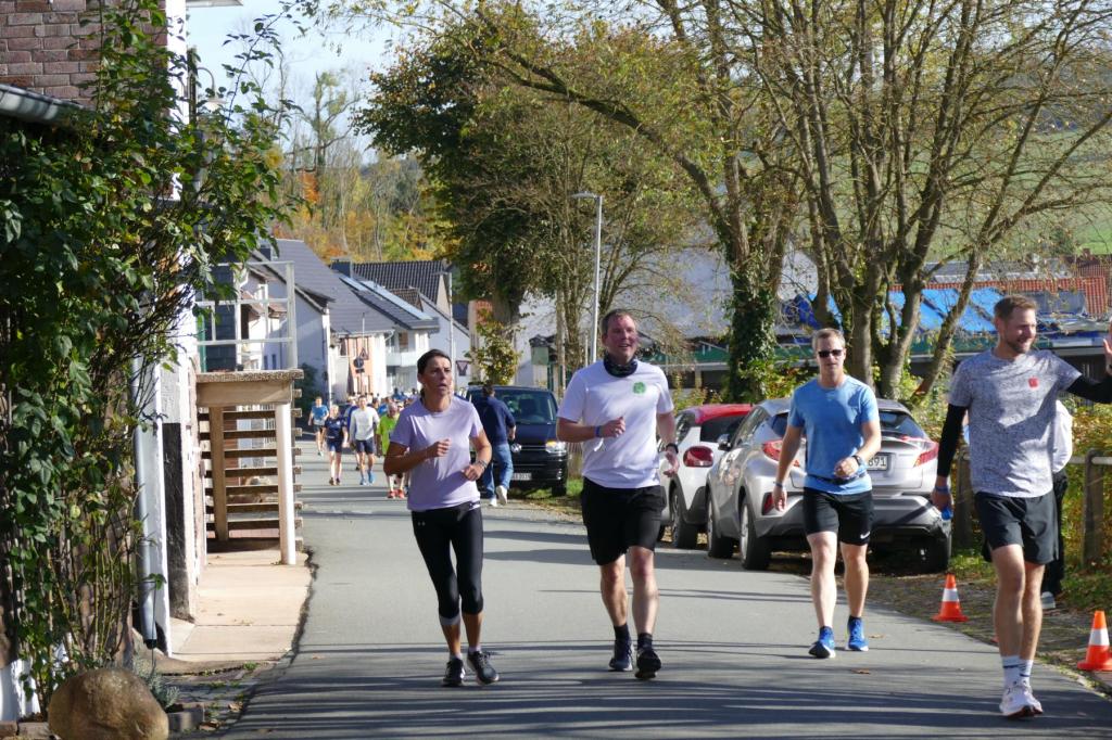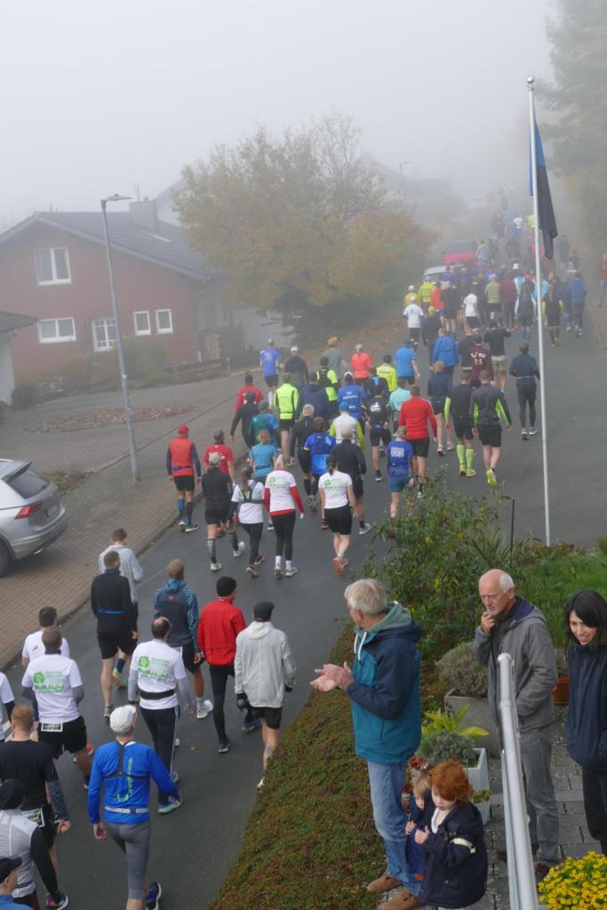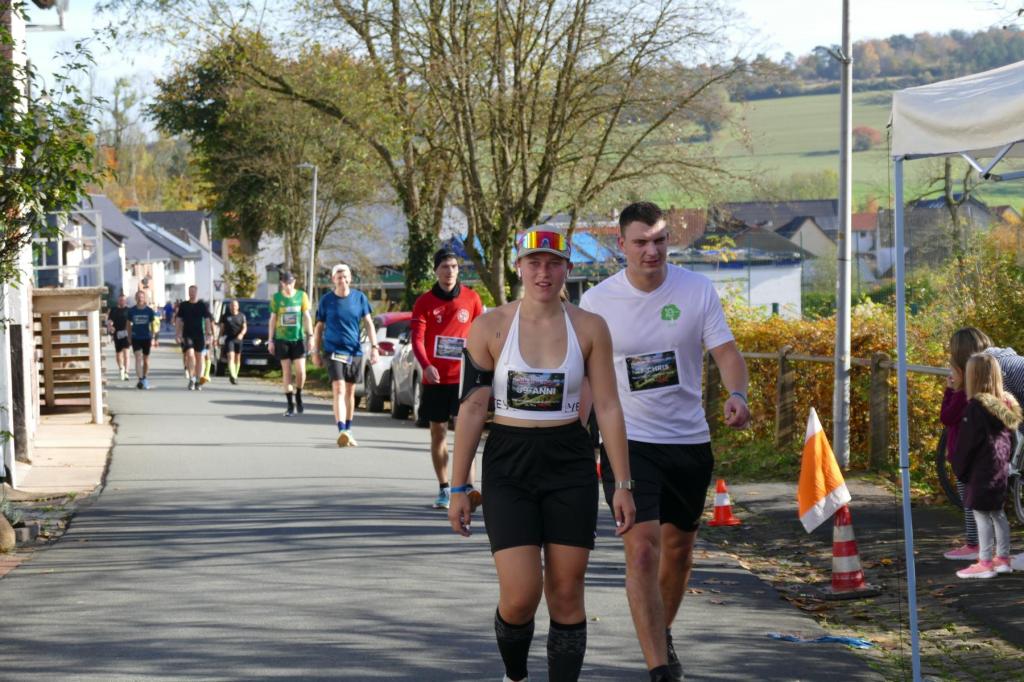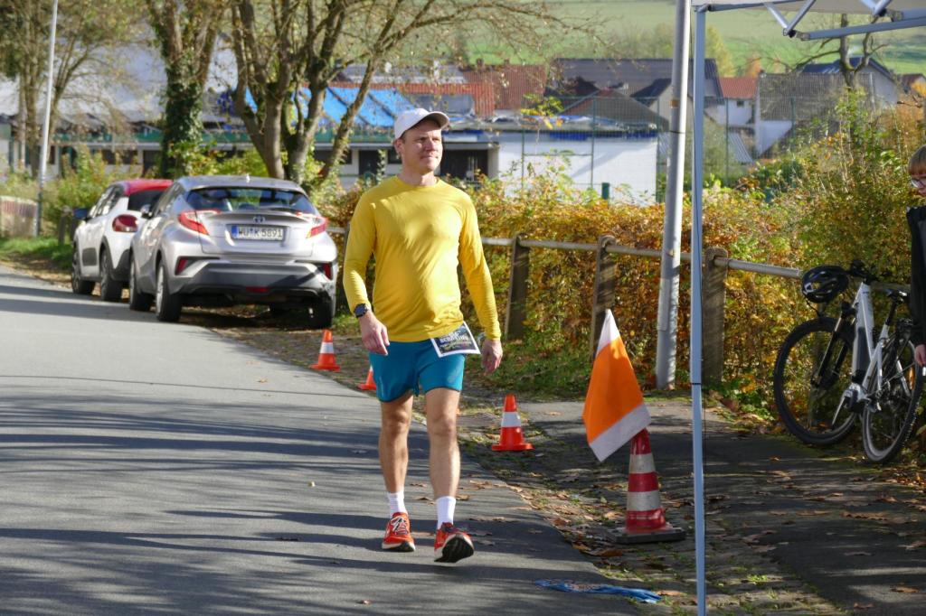 War es im letzten Jahr noch so, dass Regen und Wind den LäufgerInnen ordentlich zugesetzt haben, hat im diesem Jahr die Sonne den Samstag dominiert! Die erste Runde startete das 130köpfige Feld noch im Nebel, doch schon auf der ersten Runde durchbrachen die TeilnehmerInnen auf dem Höhenzug den Nebel und hatten von diesem Zeitpunkt die Sonne auf ihrer Seite. Es wurde richtig warm und so entdeckte man kurze Hosen und Shirts, wohin man nur sah. Mit dem Abend kam dann aber langsam die Kälte und eine sternenklare Nacht kündigte sich an. Also wurde freie Haut unter langer Kleidung versteckt. Lediglich Markus Thonemann zog seine 24 Runden in kurz/kurz durch. 32 StarterInnen schafften die 15 Runden und damit 100 Kilometer. 88 LäuferInnen schafften die Ultradistanz von 45 Kilometer. 9 Leute schafften die 24 Stunden und damit den 100 Meiler. Im Backyard waren also die wesentlichen Ziele noch abgehakt. Wer dann noch weiterläuft, will gewinnen. Rieke stieg nach 25 Runden aus. 5 Leute gaben sich die Kante und erfüllten die 30 Runden (200K). Jörn und Marvin, die sicherlich noch gekonnt hätten, aber einfach zufrieden mit Ihrer Leistung waren schickten Ray auf die 31 Runde – die Siegerrunde. Christian Jakl war glücklich 30 Runden erledigt zu haben (oder haben sie ihn erledigt?). Auch Mike stieg nach 30 Runden aus. Er hat nach den Jahren 2022 (24Runden), 2023 (27 Runden) und nun 2024 (30 Runden) die meisten Loops beim WBU gemacht. Mathematisch muss er nächstes Jahr also 33 Runden schaffen.