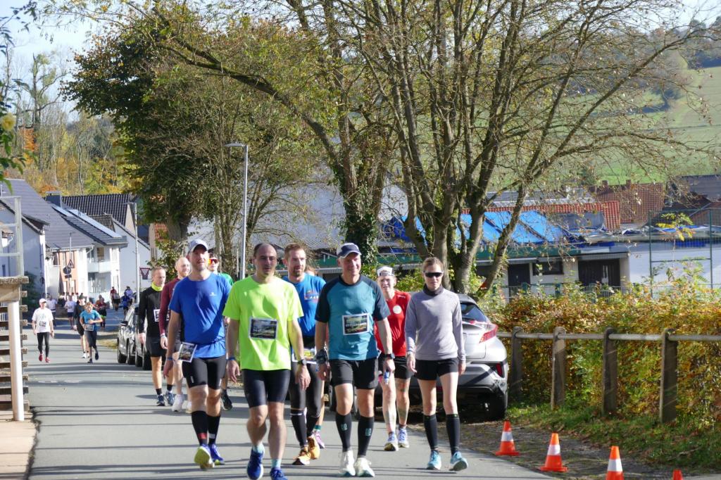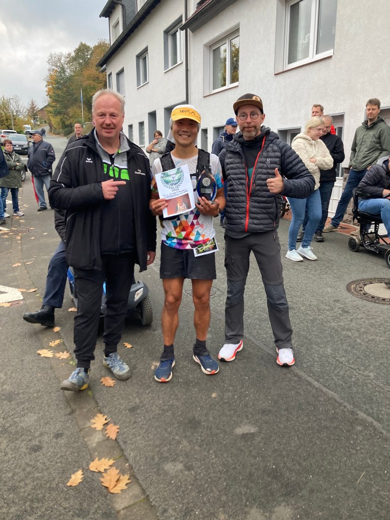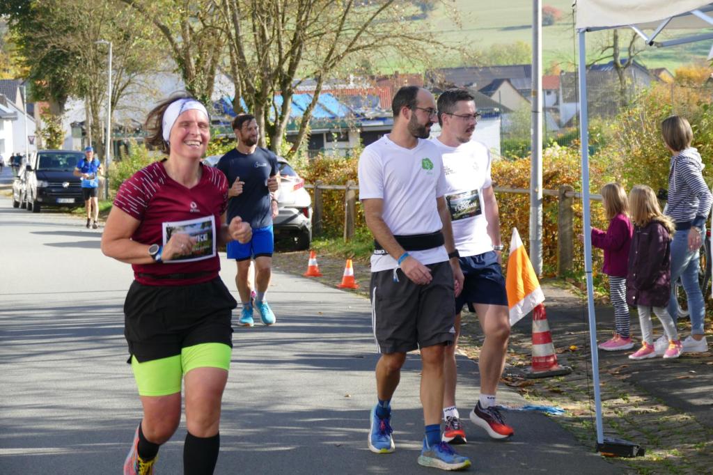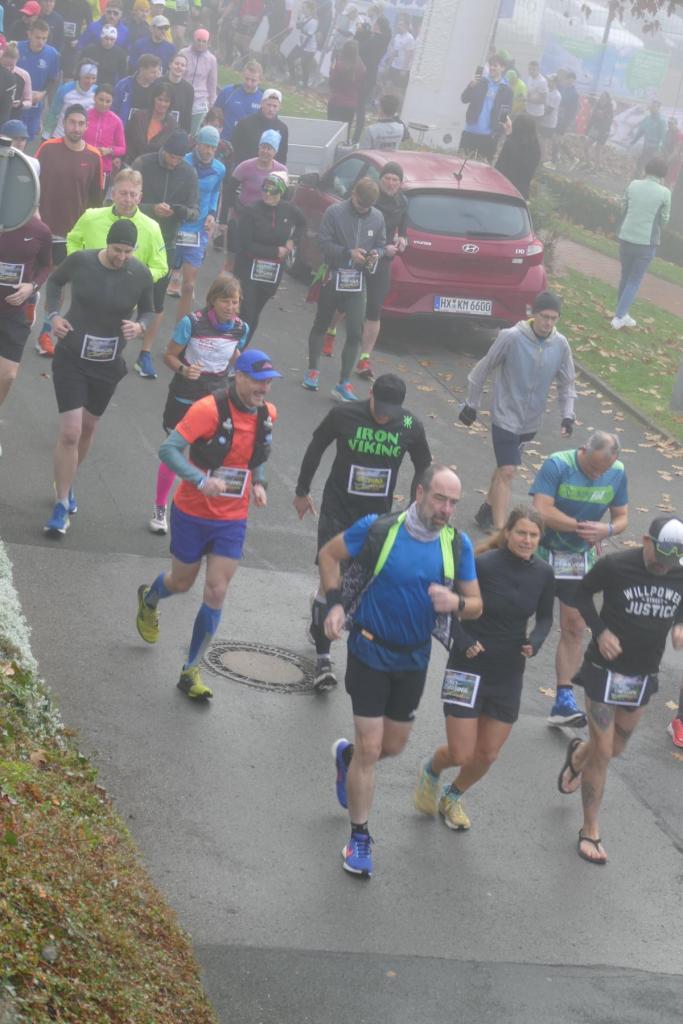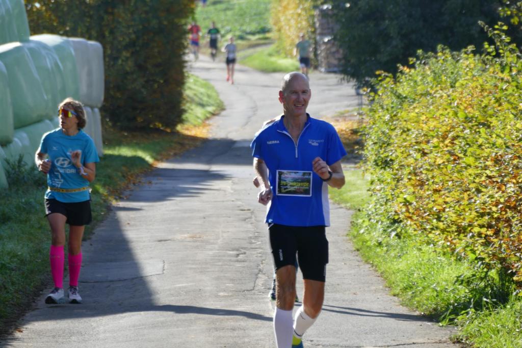 War es im letzten Jahr noch so, dass Regen und Wind den LäufgerInnen ordentlich zugesetzt haben, hat im diesem Jahr die Sonne den Samstag dominiert! Die erste Runde startete das 130köpfige Feld noch im Nebel, doch schon auf der ersten Runde durchbrachen die TeilnehmerInnen auf dem Höhenzug den Nebel und hatten von diesem Zeitpunkt die Sonne auf ihrer Seite. Es wurde richtig warm und so entdeckte man kurze Hosen und Shirts, wohin man nur sah. Mit dem Abend kam dann aber langsam die Kälte und eine sternenklare Nacht kündigte sich an. Also wurde freie Haut unter langer Kleidung versteckt. Lediglich Markus Thonemann zog seine 24 Runden in kurz/kurz durch. 32 StarterInnen schafften die 15 Runden und damit 100 Kilometer. 88 LäuferInnen schafften die Ultradistanz von 45 Kilometer. 9 Leute schafften die 24 Stunden und damit den 100 Meiler. Im Backyard waren also die wesentlichen Ziele noch abgehakt. Wer dann noch weiterläuft, will gewinnen. Rieke stieg nach 25 Runden aus. 5 Leute gaben sich die Kante und erfüllten die 30 Runden (200K). Jörn und Marvin, die sicherlich noch gekonnt hätten, aber einfach zufrieden mit Ihrer Leistung waren schickten Ray auf die 31 Runde – die Siegerrunde. Christian Jakl war glücklich 30 Runden erledigt zu haben (oder haben sie ihn erledigt?). Auch Mike stieg nach 30 Runden aus. Er hat nach den Jahren 2022 (24Runden), 2023 (27 Runden) und nun 2024 (30 Runden) die meisten Loops beim WBU gemacht. Mathematisch muss er nächstes Jahr also 33 Runden schaffen.